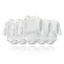 Autunno inverno ODM Set di 5 pezzi per bambino a maniche lunghe in cotone bianco puro tuta da uomo e donna tute tinta unita